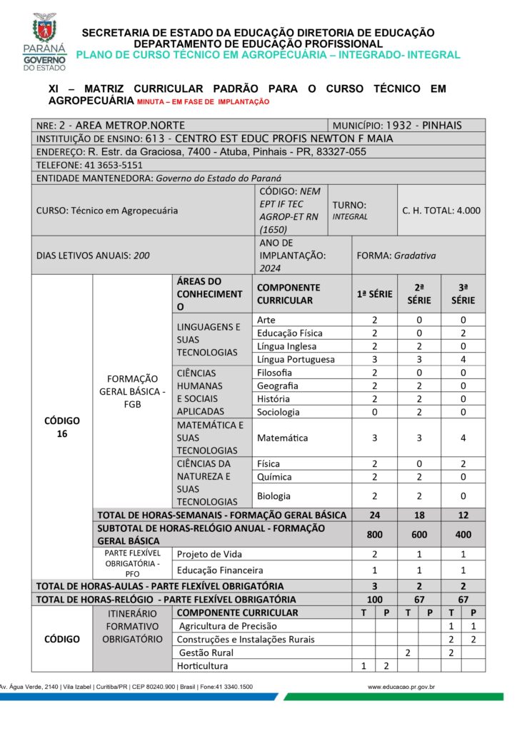 Técnico em Agropecuária – 3 Anos – MATRIZ